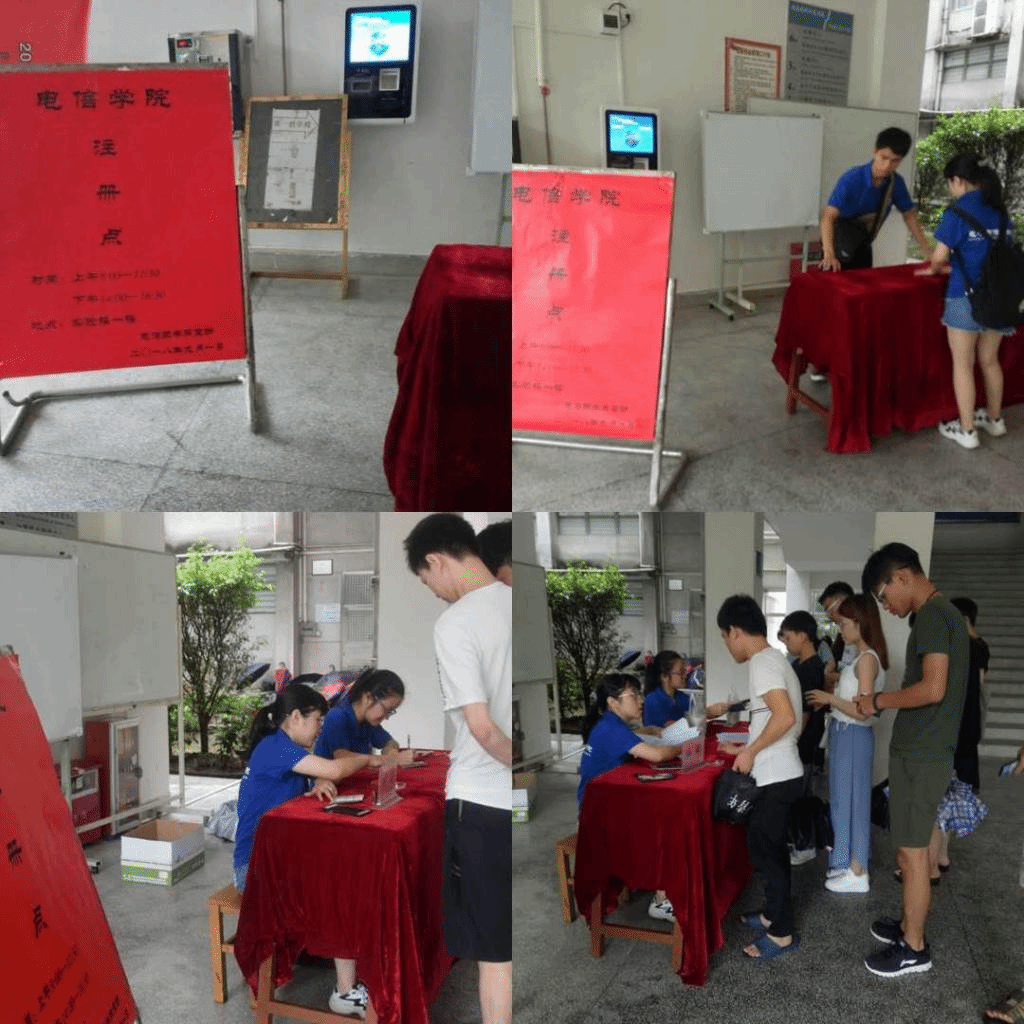 2018年9月1日,电子与信息学院在实验楼一楼开展了2018-2019学年第一学期开学注册工作。注册工作主要由秘书处负责,网络宣传部以及体育部协助现场布置工作。