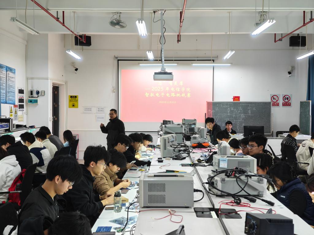 11月20日下午,电子与信息学院依托智能家电实训中心,在白云校区第四实训楼举办“芯”有灵犀——智驭电子电路挑战赛。120名本科生同台竞技,以实操比拼锤炼电子技术硬功,践行学校“服务产业、引领职教”办学理念与“做人好、身体好、就业好”育人目标。